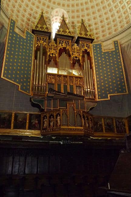 Organo Mayor: CDE – c3 (deling tussen c1 en cis1) Flautado 8′ (B/D), Violón 8′ (B/D), Octava 4′ (B/D), 2ème Octava 4′ (B/D), Docena 2 2/3′ (B/D), Quincena 2′ (B/D), Decinovena 1 1/3′ (B/D), Nasardo en 12a 2 2/3′ (B/D), Nasardo en 15a 2′ (B/D), Nasardo en 17a 1 3/5′ (B/D), Corneta Magna 6 hileras (discant), Corneta de Eco (discant), Lleno 4 hileras (B/D), Címbala (B/D), Trompete Réal 8′ (B/D), Orlos 8′ (B/D), Bajoncillo 4′ (bas), Clarín de Eco 4′ (discant), Clarín de Campaña 4′ (discant), Clarín Claro 4′ (discant), Clarín en 15a 2′ (bas).
