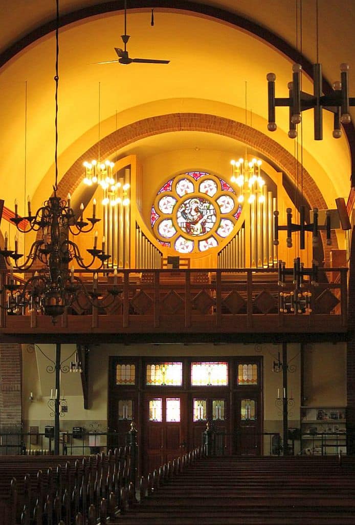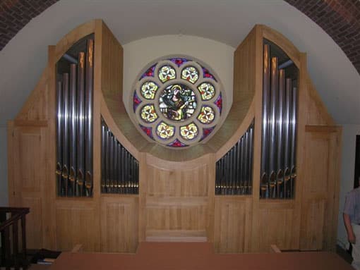 de kerk zichtbaar bleef. Het orgel heeft een vrijstaande speeltafel. De Octaaf 2’en de Gemshoorn 2′ zijn van plaats verwisseld. Bovendien kreeg