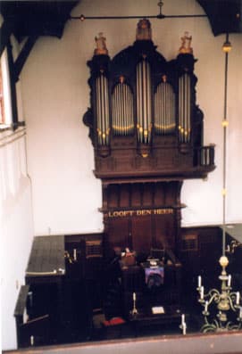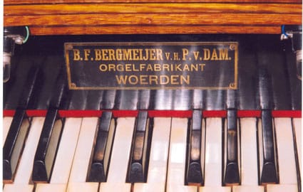 B.F. Bergmeijer v.h. P. v. Dam 1900. De kerk is in 2019 gesloten. Het is niet bekend wat er met het orgel gaat gebeuren.