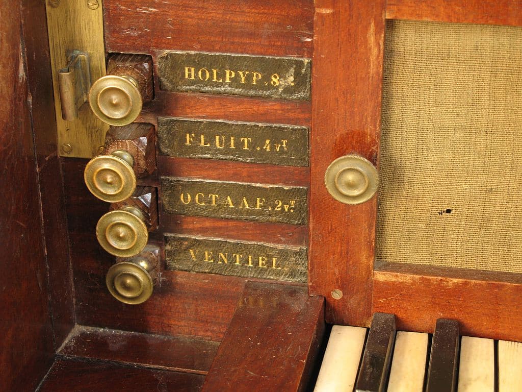 De dispositie van het kabinetorgel: (bouwer onbekend, ca. 1835)
