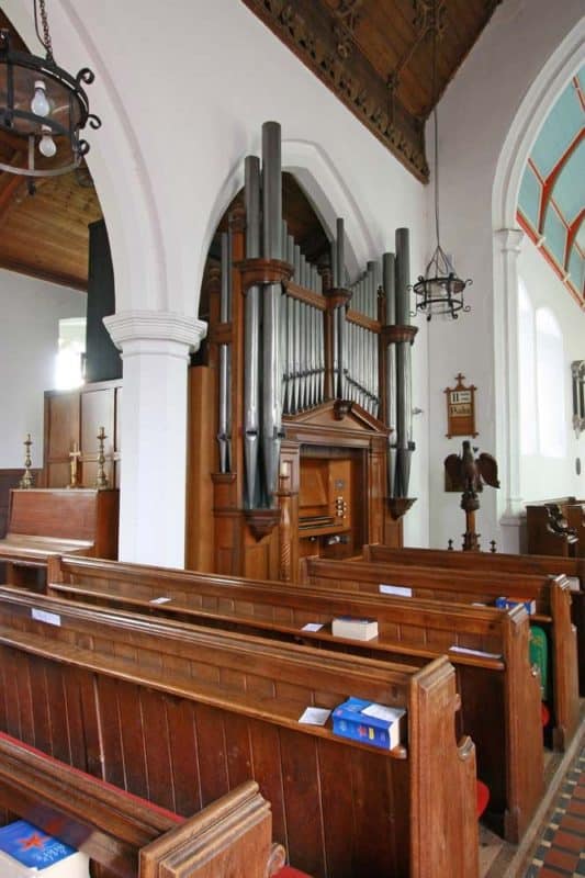 Oorspronkelijk gebouwd als huisorgel, in 1938 werd het in de kerk geplaatst. Het mechanische sleepladen-orgel werd in 1894 gebouwd door de firma Walker & Sons.
