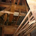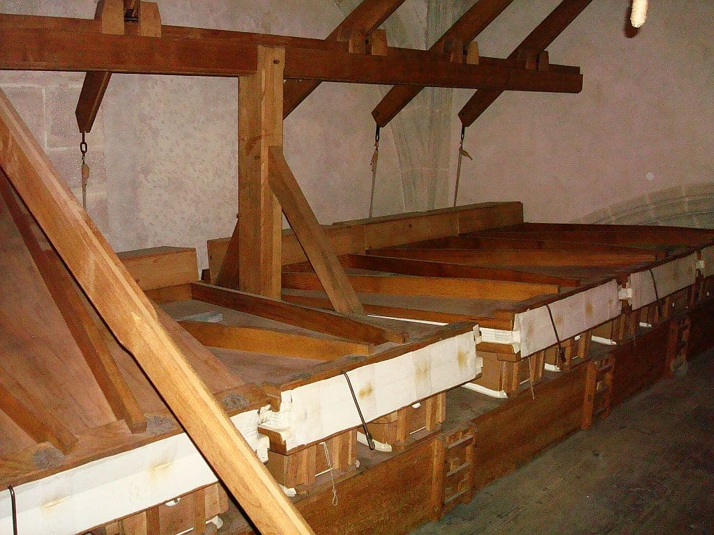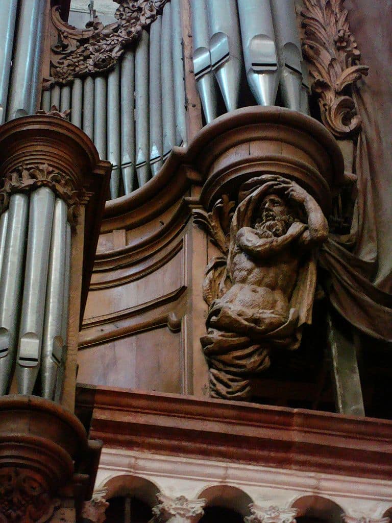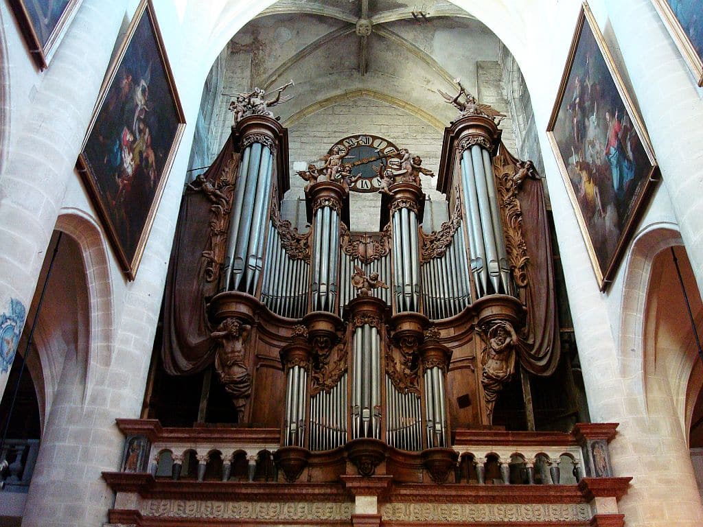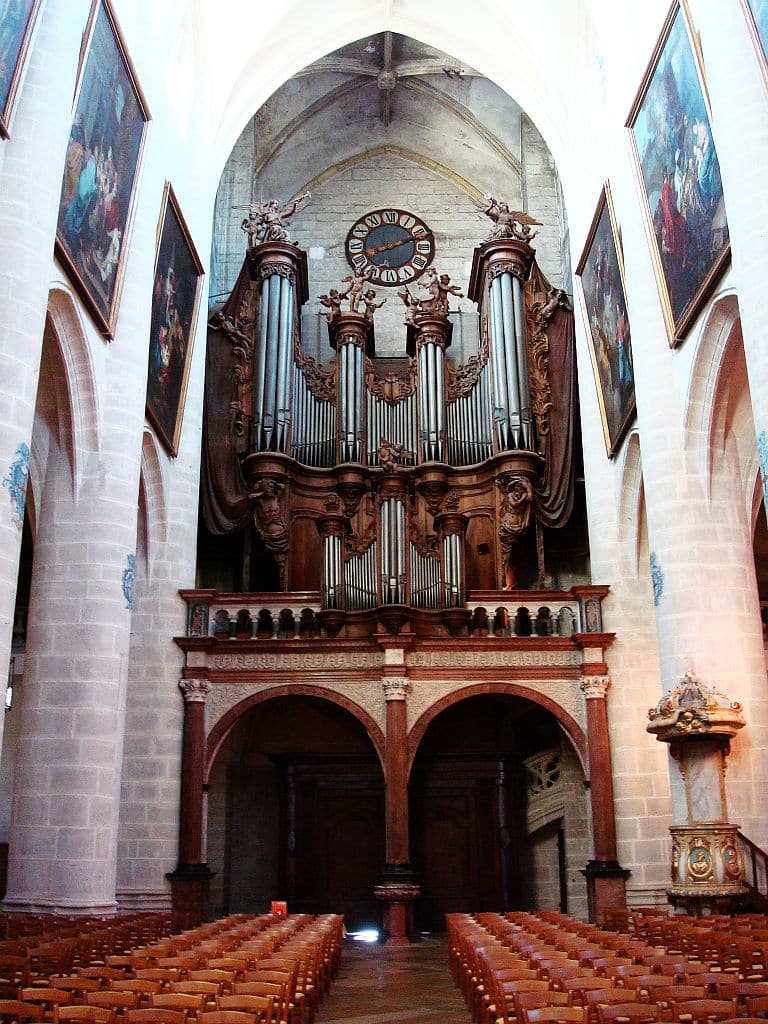 Positif de Dos: Montre 8′, Bourdon 8′, Prestant 4′, Flûte 4′, Nasard 2 2/3′, Doublette 2′, Tierce 1 3/5′, Cornet 5 rangs (discant), Fourniture Cymbale 4 rangs, Trompette 8′, Cromorne 8′, Voix Humaine 8′, Clairon 4′.