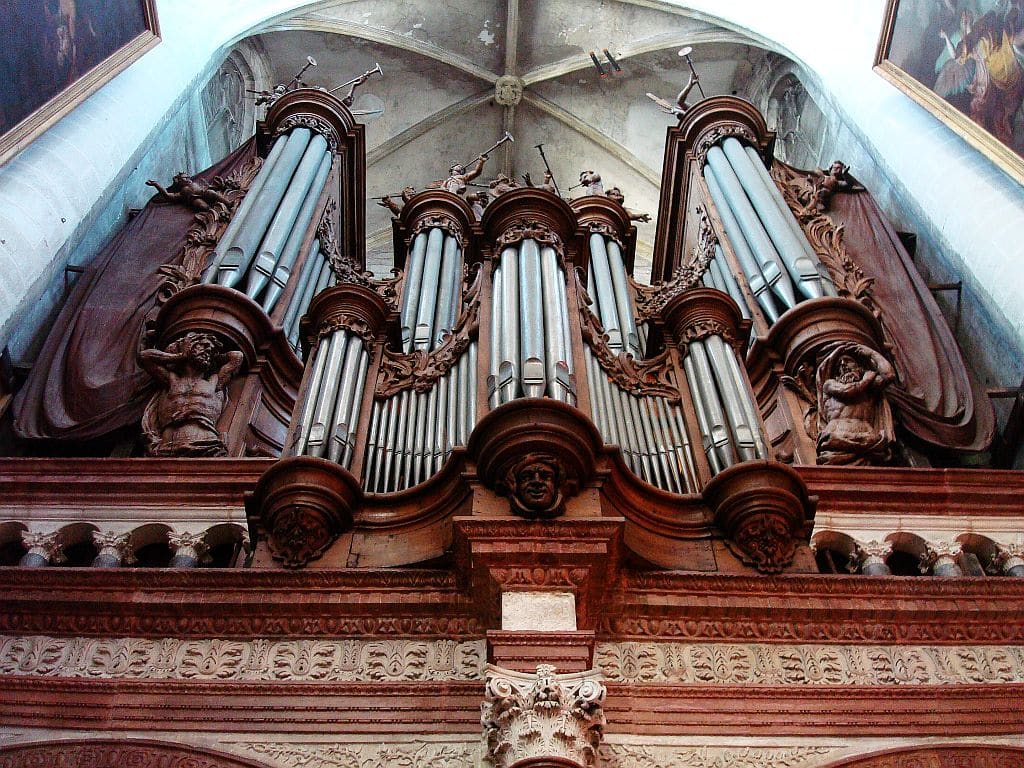 Grand Orgue: Montre 16′, Bourdon 16′, Montre 8′, Bourdon 8′, Bourdon 8′ (vanaf g°), Prestant 4′, Grosse Tierce 3 1/5′, Nasard 2 2/3′, Doublette 2′, Quarte 2′, Tierce 1 3/5′, Cornet 4 rangs (vanaf g°), Fourniture 5 rangs, Cymbale 3 rangs, Bombarde 16′, 1ère Trompette 8′, 2ème Trompette 8′, Clairon 4′.