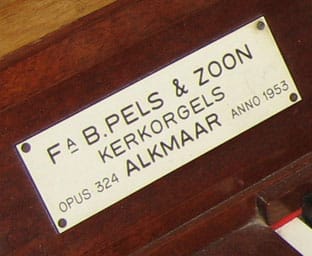 Dispositie Pels-orgel (1953):