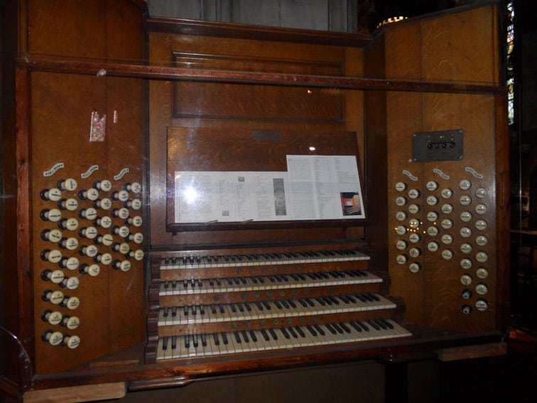 GREAT (C – c4) 61 TOETSEN: Double Diapason 16′, Open Diapason no. 1 8′, Open Diapason no. 2 8′, Open Diapason no. 3 8′, Open Diapason no. 4 8′, Claribel 8′, Principal 4′, Flute Harmonique 4′, Twelfth 2 2/3′, Fifteenth 2′, Mixture 3-4 ranks, Mixture 3 ranks, Trombone 16′, Trumpet 8′, Trumpet Harmonique 8′, Clarion Harmonique 4′.