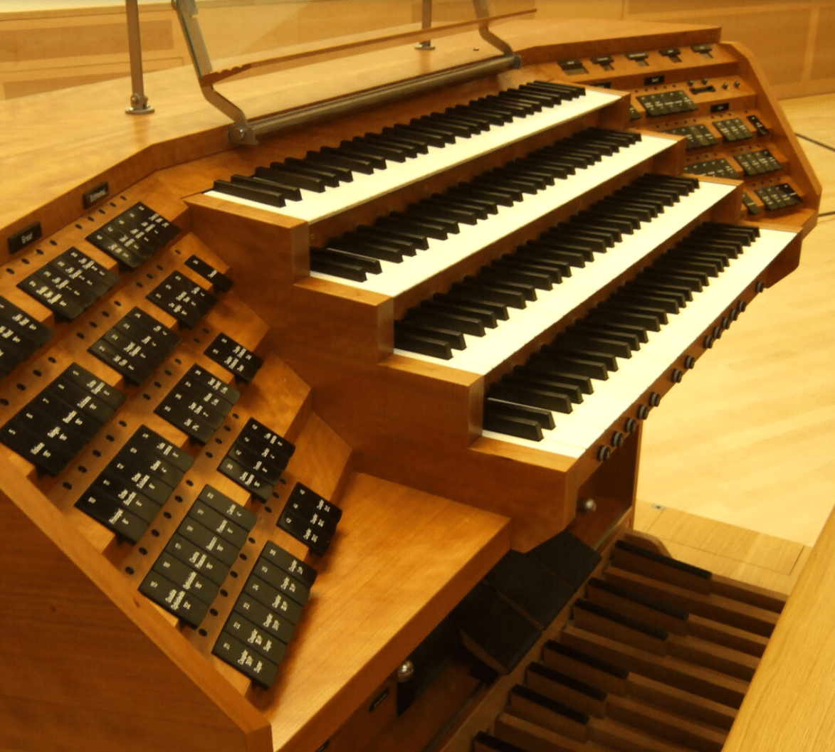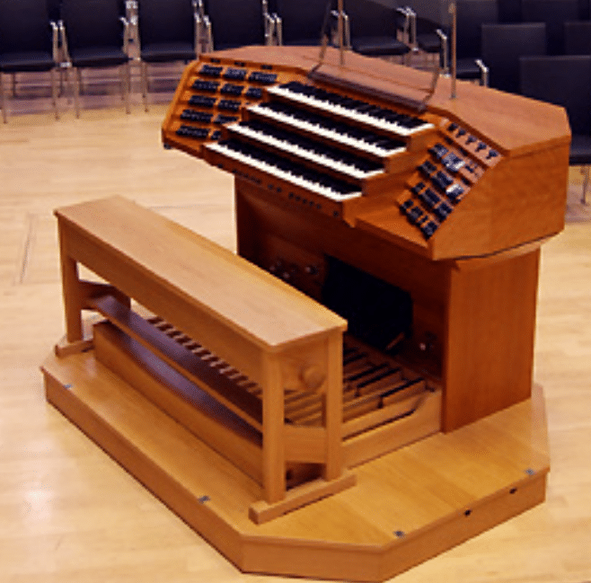 Orchestral (enclosed): Contra Viola 16′, Viole d’Orchestre 8′, Violes Celestes 8′, Viole Octaviante 4′, Cornet de Violes 3 ranks (3 1/5′), Cor Anglais 16′, Orchestral Oboe 8′, Tremulant, Carillon 4′ (c’-d”’).