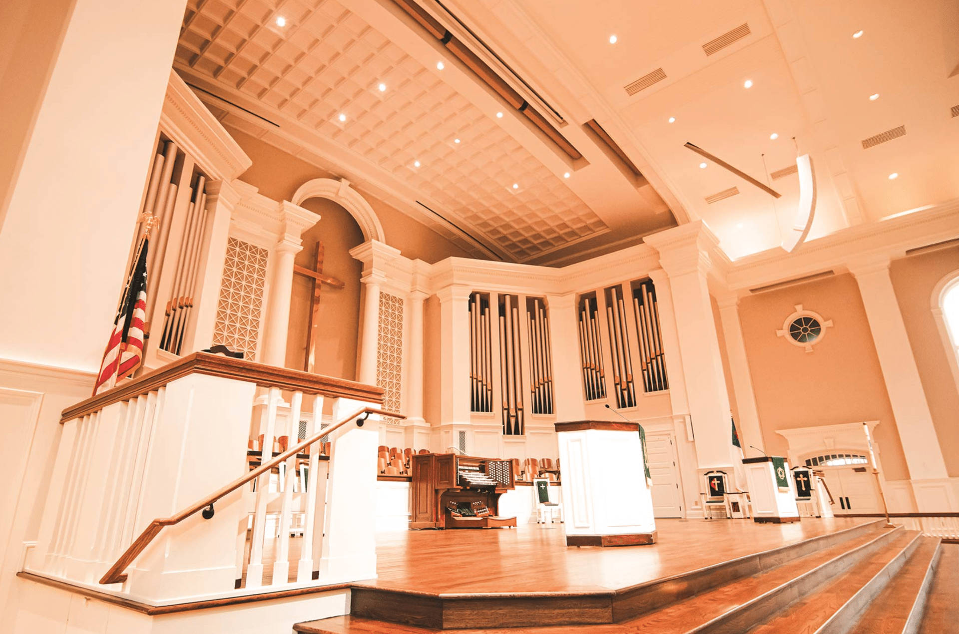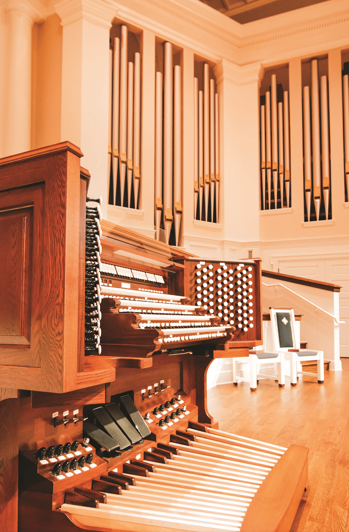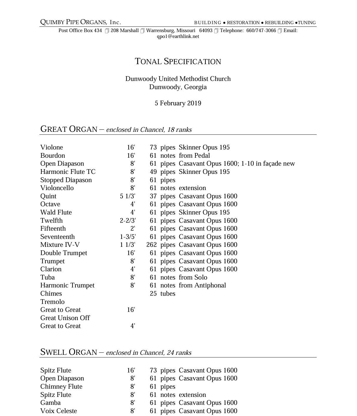 Quimby Pipe Organs bouwde in 2019 een nieuw pijporgel met 98 ranks, 4 manualen en een vrij pedaal voor de Dunwoody United Methodist Church in Dunwoody (Georgia) USA. Het pedaalklavier is radiaal concaaf.