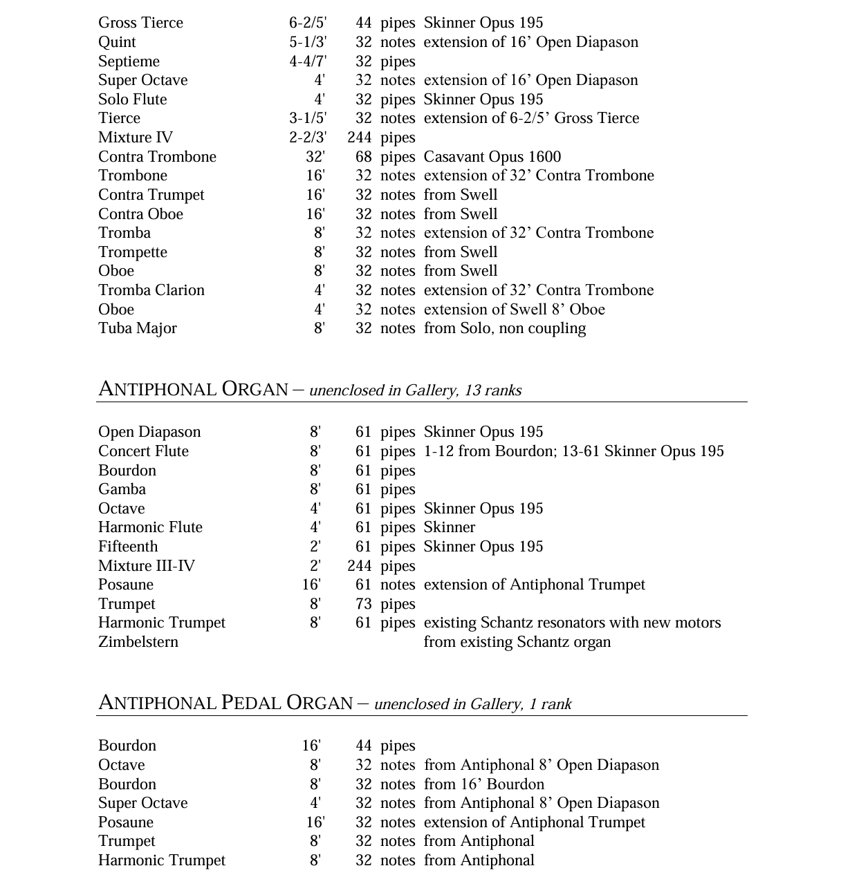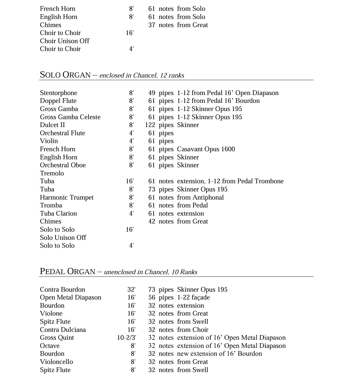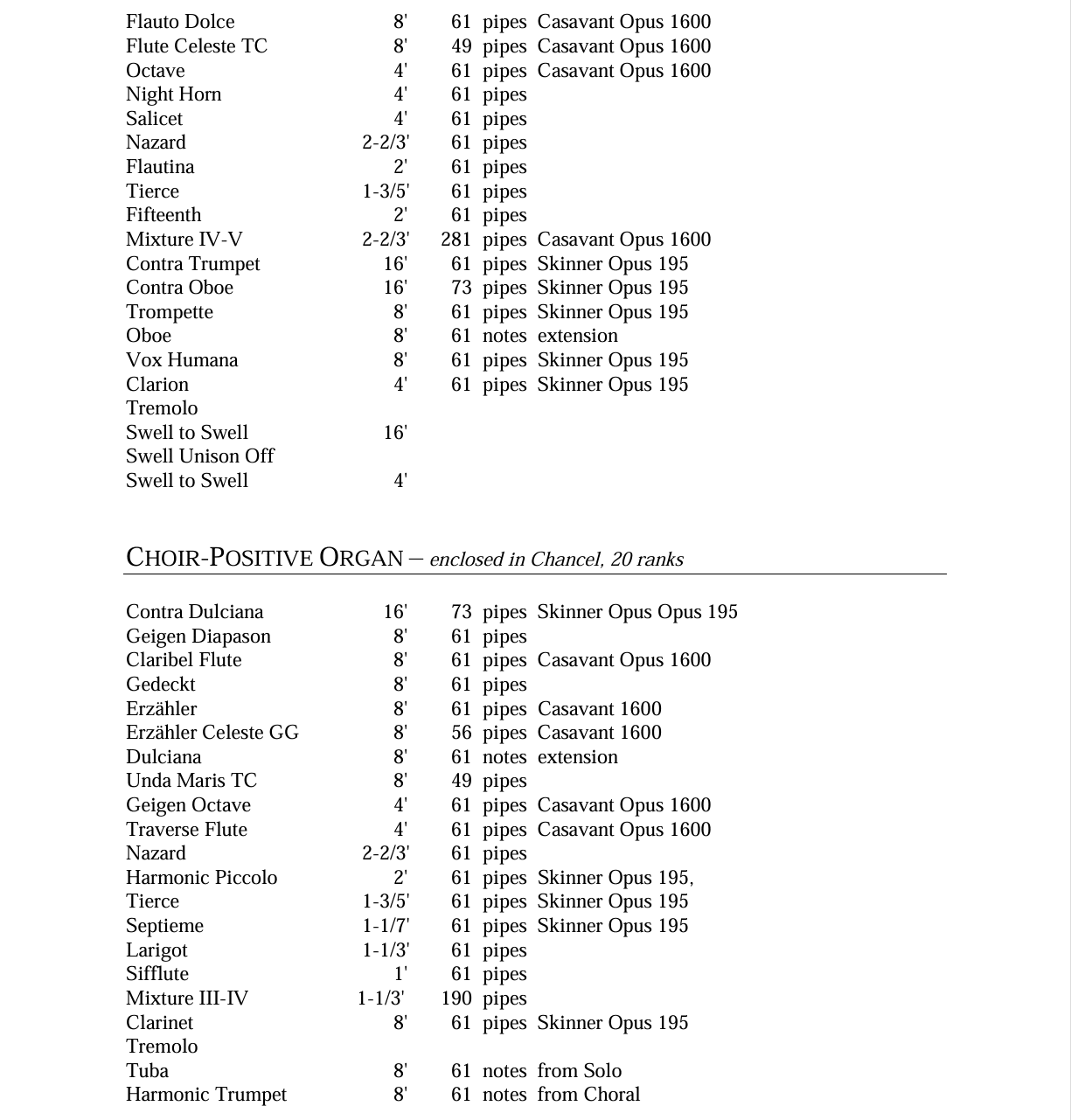 Quimby Pipe Organs bouwde in 2019 een nieuw pijporgel met 98 ranks, 4 manualen en een vrij pedaal voor de Dunwoody United Methodist Church in Dunwoody (Georgia) USA. Het pedaalklavier is radiaal concaaf.