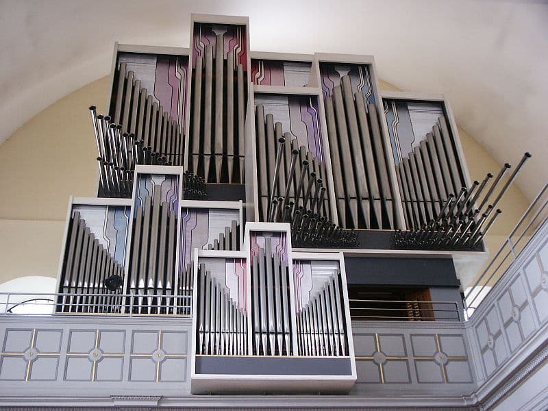 | Hauptwerk: C – c4 Gemshorn 16 Prinzipal 8 Koppelflöte 8 Oktav 4 Rohrflöte 4 Spitzoktav 2 Mixtur 6 fach (2′) Cornett 5 fach Sesquialter 2 fach (2 2/3′) Buntzimbel 4 fach (1/2′) Musette 8 Chamade 8 Clairon 4 Tremulant Pedal: C – g1 |