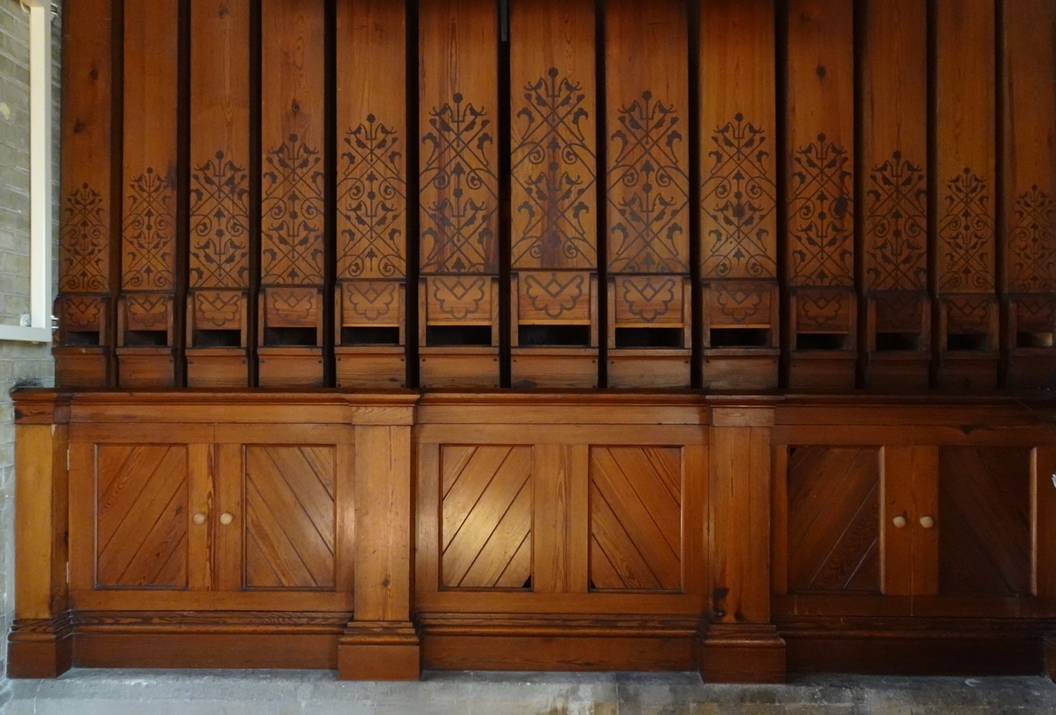 Pedal: C – g1 (32 toetsen) Open Diapason 16′, Bourdon 16′, Violoncello 8′, Bass Flute 8′.