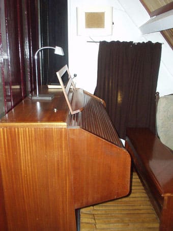 - Het orgel werd in 1970 door vrijwilligers overgeplaatst naar de kerk van Gereformeerde Gemeente in Nederland te Ederveen. Het werd door de firma Koppejan overgeplaatst en met een Subbas 16′ op het pedaal uitgebreid.