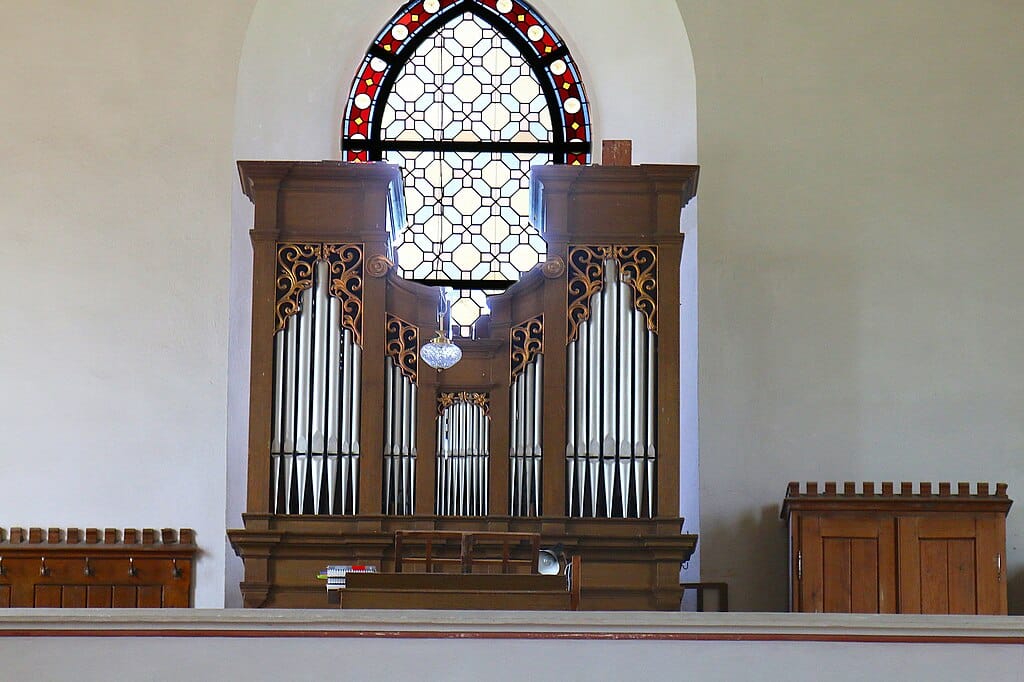MANUAL: C – c3 (49 TOETSEN) Waldflöte 8′, Prinzipal 4′ (in front), Fugara 4′, Quint 2 2/3′, Prinzipal 2′, Mixtur 2 fach 1′.
