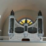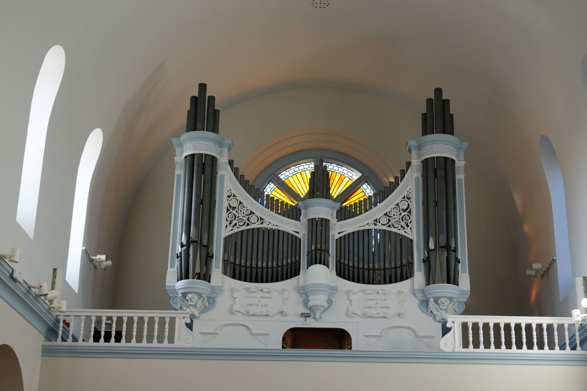 SWELL: IN ZWELKAST Open Diapason 8′, Gedact 8′, Gamba 8′, Voix Celeste 8′, Principal 4′, Horn 8′, Oboe 8′, Tremulant.