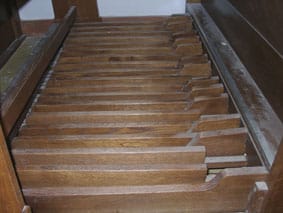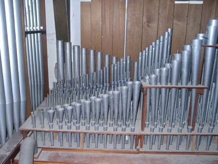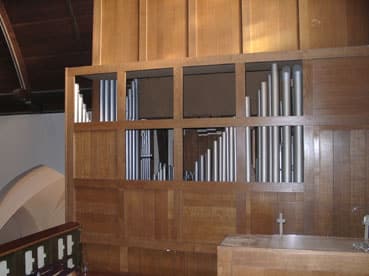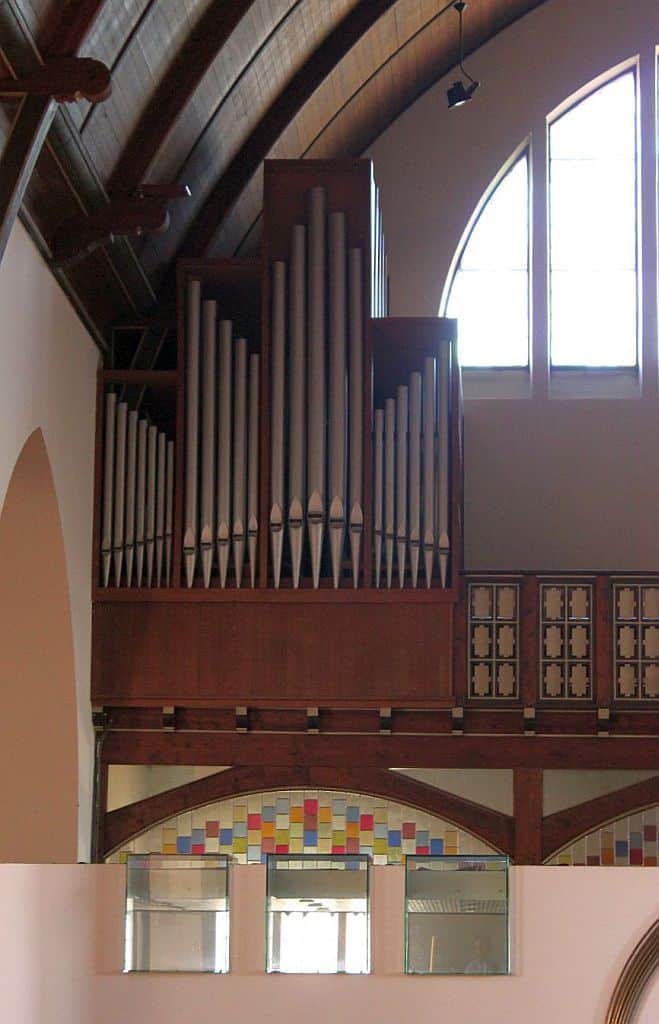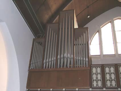 De dispositie van het Vermeulen-orgel: (1963, met gebruikmaking van veel ouder pijpwerk)