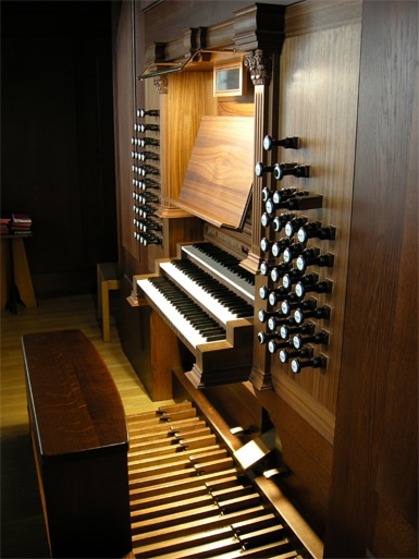 Pedal: (C-f1) Gedackter Bahs 32 Principalbahs 16 Subbahs 16 Gedacktbahs 8 Octavbahs 8 Super Octav 4 Posaunbahs 32 Posaune 16 Trombettbahs 8 Koppeln: |