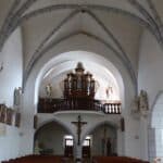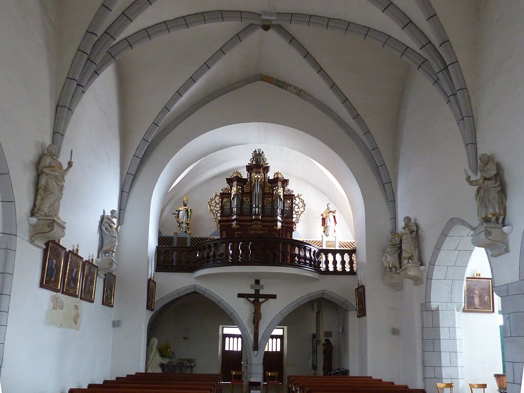I. MANUAL (C-g3): 56 TOETSEN Principal 8′, Bourdun 8′, Gemshorn 8′, Hohlflöte 8′, Gamba 8′, Salicional 8′, Vox Coelestis 8′, Octav 4′, Traversflöte 4′, Dolce 4′, Hörnlein 2 2/3’+1 3/5” – 1989, Mixtur 2 2/3′, Zimbel 1′ – 1989, Trompete 8′ – 1989.