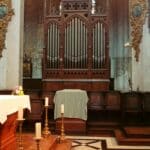 Manual: Montre 8′, Bourdon 8′ (bas), Flûte Harmonique 8′ (discant), Voix Céleste 8′, Prestant 4′, Octavin 2′, Hautbois 8′ (discant), Trompette 8′.