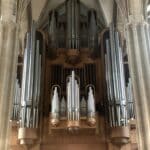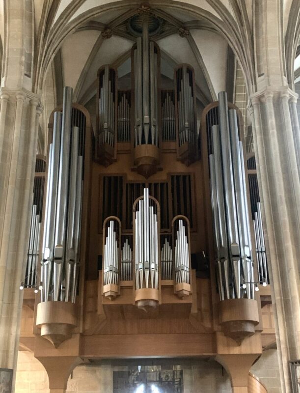 HAUPTWERK (C – a3) 58 TOETSEN: Principal 16′, Oktave 8′, Gambe 8′, Rohrflöte 8′ – C-H houten pijpwerk van Klais, Nassat 5 1/3′, Oktave 4′, Nachthorn 4′, Quinte 2 2/3′, Oktave 2′, Cornett 3-5 fach (from f°), Großmixtur 6 fach, Kleinmixtur 4 fach, Trompete 16′, Trompete 8′, Trompete 4′.
