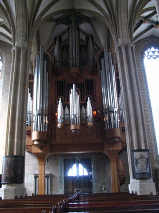 In 1906 heeft Johannes Klais een nieuw groot hoofdorgel gebouwd voor de dom van Erfurt (Thüringen) Duitsland, met vier klavieren en een vrij pedaal en in totaal 72 stemmen. Verder plaatsten zij in 1910 op het koor van de kerk een klein orgel met tien stemmen en slechts één manuaal, dat was gekoppeld aan het hoofdorgel. Het grote orgel werd in 1917 ontdaan van de frontpijpen die werden omgesmolten voor oorlogsdoeleinden en die later werden vervangen door kartonnen pijpen. De beide orgels liepen in de tweede wereldoorlog schade op. Het koororgel is na een restauratie verkocht naar een kerk in de wijk Erfurt-Fischersand. Het hoofdorgel werd gesloopt met de bedoeling dat er een groot nieuw orgel zou worden gemaakt.