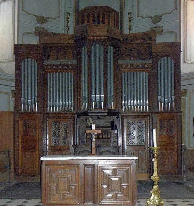 Grand Orgue: C – f3 Bourdon 16′, Montre 8′, Flûte 8′, Salicional 8′, Bourdon 8′, Prestant 4′, Flûte 4′, Doublette 2′, Cornet 5 rangs, Plein-Jeu 3 rangs, Trompette 8′, Clairon 4′.