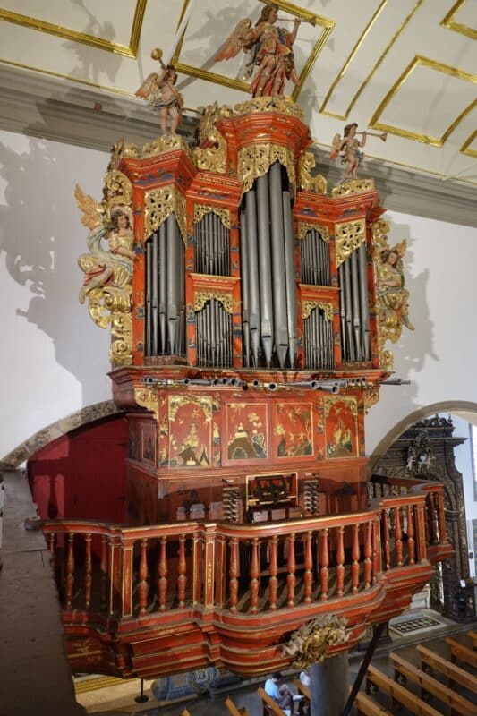 HAUPTWERK (CDEFGABH-c3) 42 TOETSEN (KORT OCTAAF):  Flaut de 24 16′, Flaut de 12 Aberto 8′, Bordão 8′, Voz Humana 8′ (discant), Octava Real 4′, Quinta Real 3′, Quinta Decima 2′, Decima Setima 1 3/5′, Cheio 1ª II (bas), Cheio 2ª IV, Cornetto Real V (discant), Tromba Real 8′ (bas), Clarin Mão Direita 8′, Trombeta de Marcha 4′.