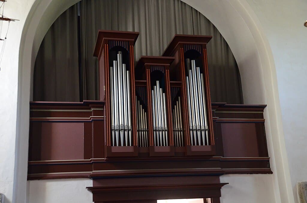 HOVEDVÆRK: Principal 8′, Gemshorn 8′, Oktav 4′, Dækfløjte 4′, Oktav 2′, Mixtur 4 kor.