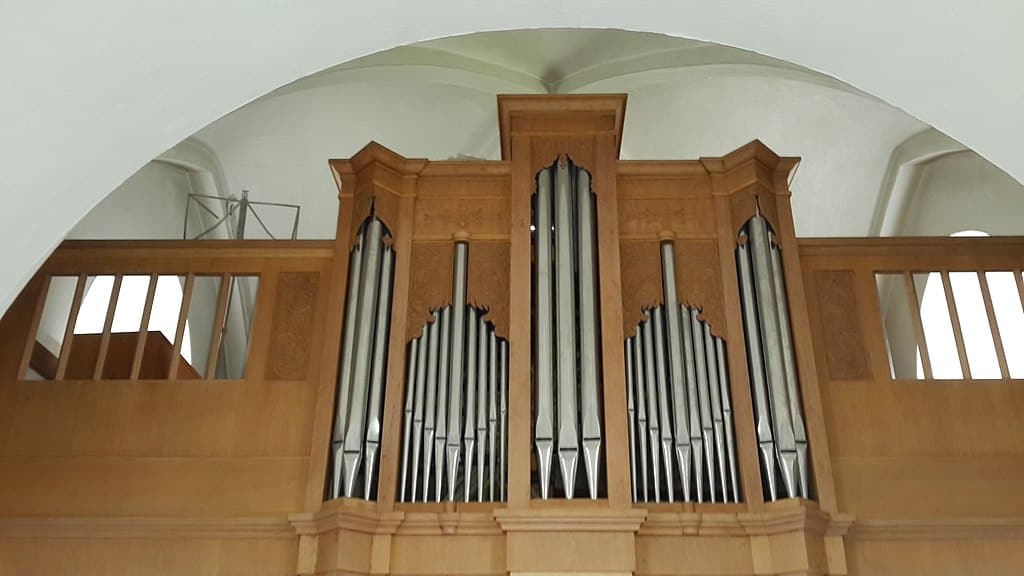 BRÖSTVERK (MANUAL II) (C-g3): 56 TOETSEN Rörflöjt 8′, Pommer 4′, Prinzipal 2′, Sexquialtera 2 chor, Zimbel 1 chor (1/4′), Tremulant.