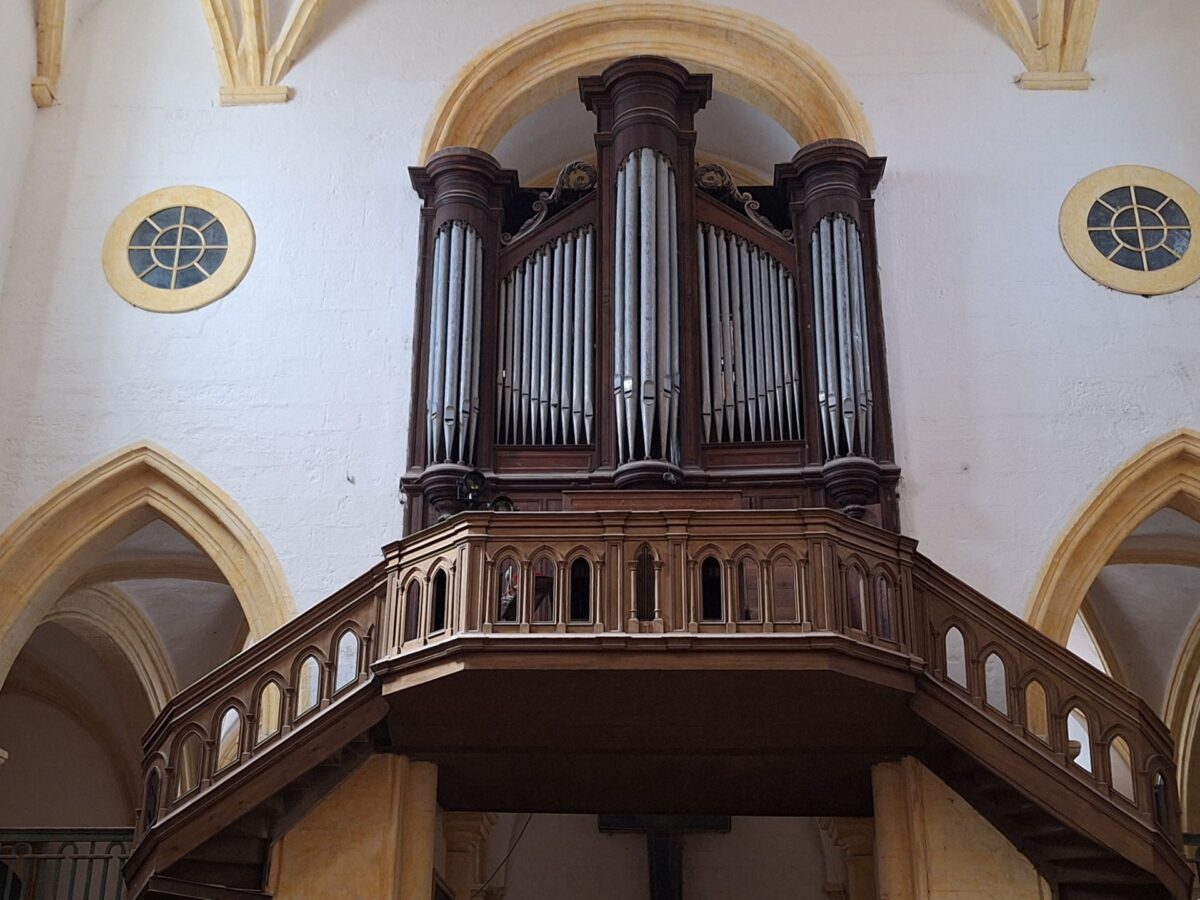 GRAND ORGUE (C-c3): 49 TOETSEN Bourdon 16′, Montre 8′, Bourdon 8′, Salicional 8′, Flûte Harmonique 8′, Prestant 4′, Doublette 2′, Cornet 3 rangs, Trompette 8′.