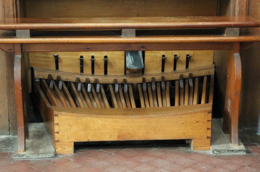 Pedal Organ: C – f1 Open Diapason 16′, Bourdon 16′, Principal 8′ – 1900, Bass Flute 8′ – 1909 extension.