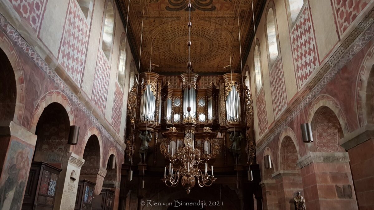 I RÜCKPOSITIV (CD – d3) 50 TOETSEN: Principal 4′, Quintadena 8′, Gedact 8′, Gedact 4′, Gemshorn 4′, Octav 2′, Sesquialter II, Quinta 1 1⁄2′, Mixtur III 1′, Krummhorn 8′, Tremulant.