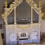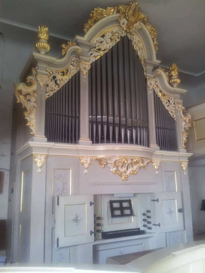 Manual: CD – c3 Principal 8′, Gedackt 8′, Quintaden 8′, Octava 4′, Rohrflöth 4′, Quinta 3′, Nassat 3′ (discant), Octava 2′, Quinta 1 1/2′, Sufflet 1′, Sesquialtera 2 fach (4/5′), Mixtur 3 fach (1′).