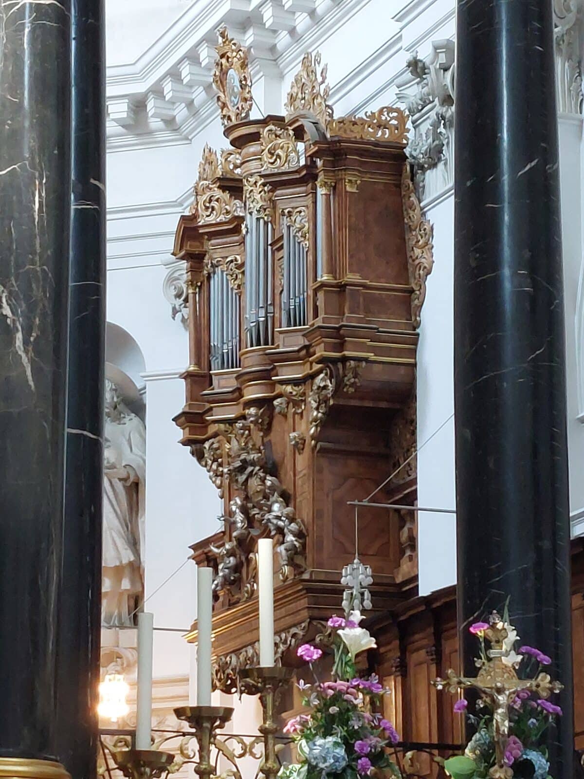 In het koor van de dom van Fulda stond een orgel dat in 1719 was gebouwd door Johann Hoffmann, orgelmaker te Würzburg. In 1873 had de orgelmaker Hahner de opdracht gekregen om het orgel om te bouwen naar kegelladen en uit te breiden met een tweede manuaal en een zelfstandig pedaal. Het werk werd gekeurd door dr. Volckmar in 1875. Het bleek echter geen goede kwaliteit te hebben. Sauer kreeg de opdracht een nieuw orgel te bouwen in de oude kas, dat in 1894 in gebruik werd genomen. De firma Späth heeft in 1937 een nieuw binnenwerk in de kas gebouwd, dat in 1938 werd aangesloten op de speeltafel van het hoofdorgel. Van Sauer zijn drie registers geheel en twee in veranderde vorm bewaard gebleven. In deze vorm bleef het orgel tot 1980 in gebruik. Onder advies van Erich Ackermann heeft de firma Kreienbrink in 1981 een nieuw orgel gebouwd in de historische orgelkas. Kreienbrink heeft twee registers overgenomen uit het voormalige Sauer-hoofdorgel van de Dom. Het sleepladen-orgel heeft elektrische tractuur, 27 stemmen, 2 manualen en een vrij pedaal.