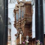 PEDAL (C-f1): 30 TOETSEN Subbaß 16′, Offenbaß 8′, Gedacktbaß 8′, Flachflöte 4′, Bauernpfeife 2′, Hintersatz 4 fach (2 2/3′), Posaune 16′, Englisch Horn 4′.