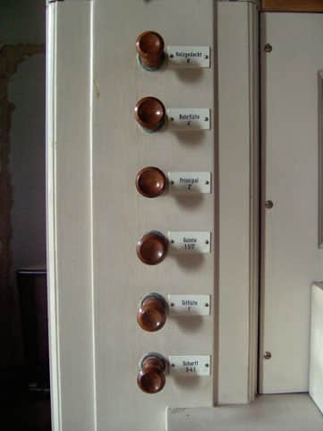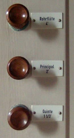 6 Zug – Register (helles, braunes Holz/ weiße Plasttäfelchen/ schwarze Ätzschrift)
