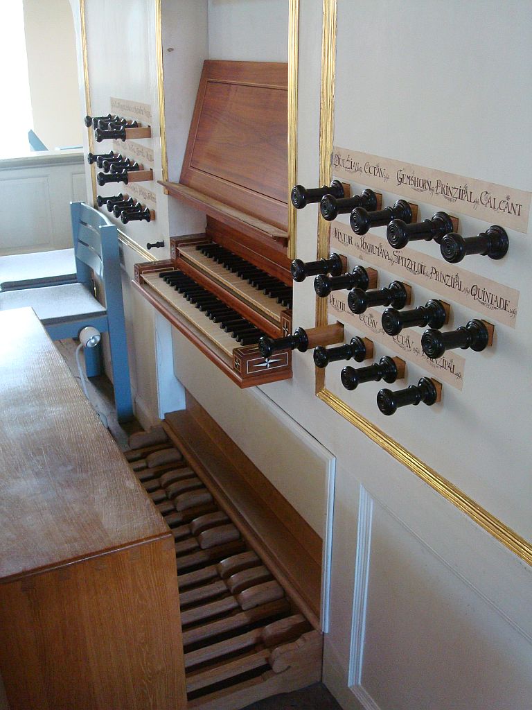 | Quintade | 16′ – 1740/1991 | Gedact | 8′ | Prinzipal | 16′ – 1740/1991 | Hauptwerk – Oberwerk – schuifkoppel | |