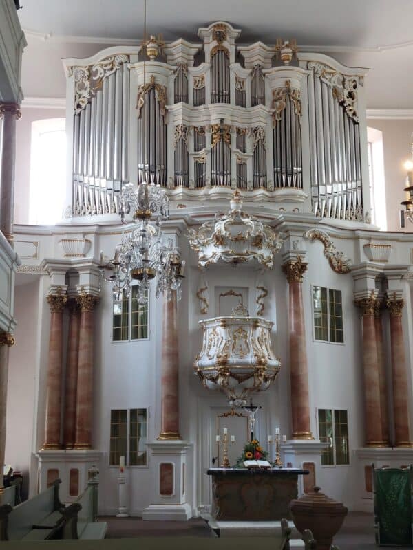 OBERWERK (C-d3): 51 TOETSEN Gedackt 8′, Quintatön 8′, Traversflöte 8′, Piffaro 8′, Principal 4′, Flauto 4′, Octave 2′, Flageolet 1′, Echo-Cornett 3 fach – 2010, Mixtur 3 fach, Scharff 4 fach, Vox Humana 8′, Tremulant.