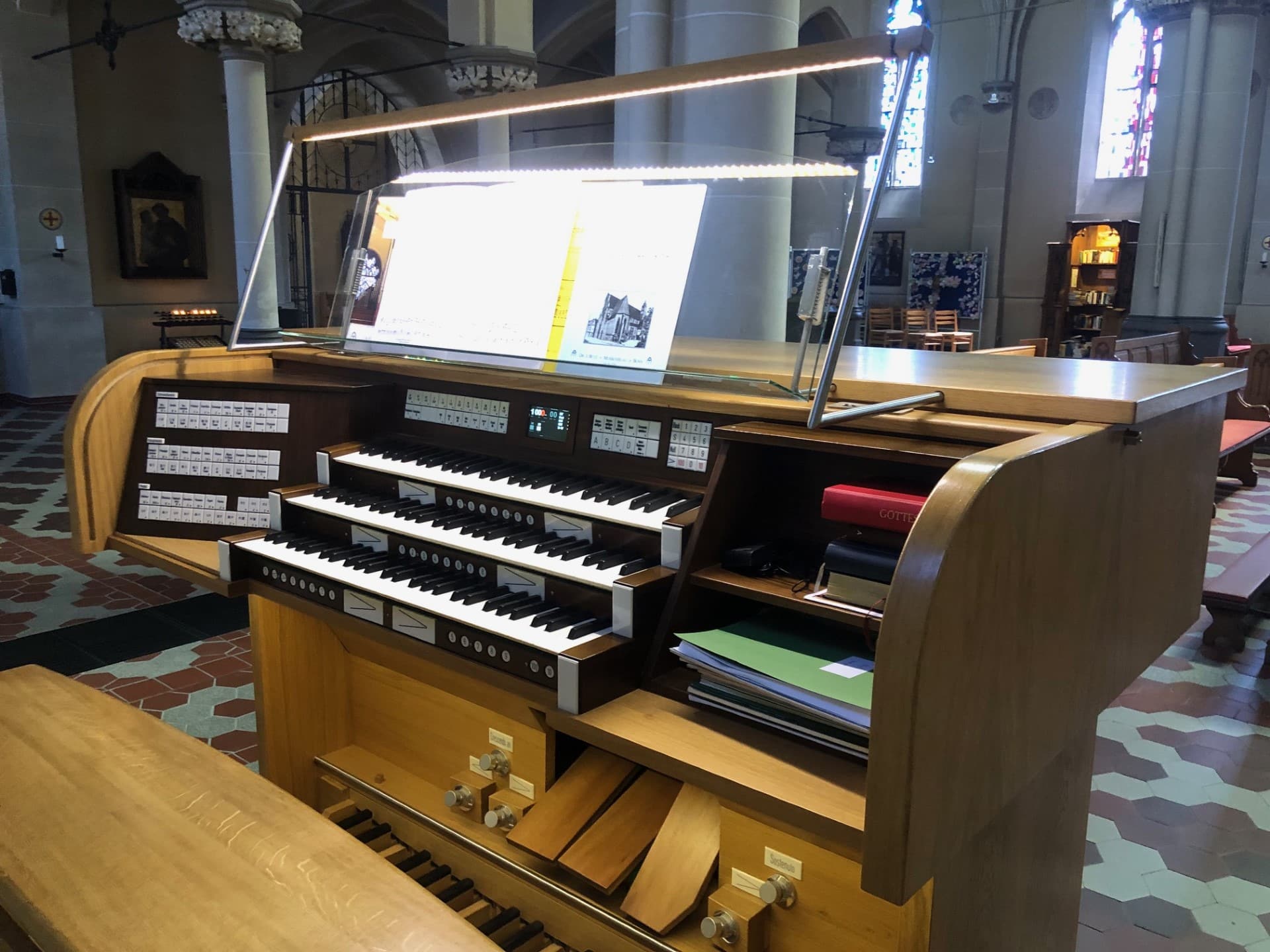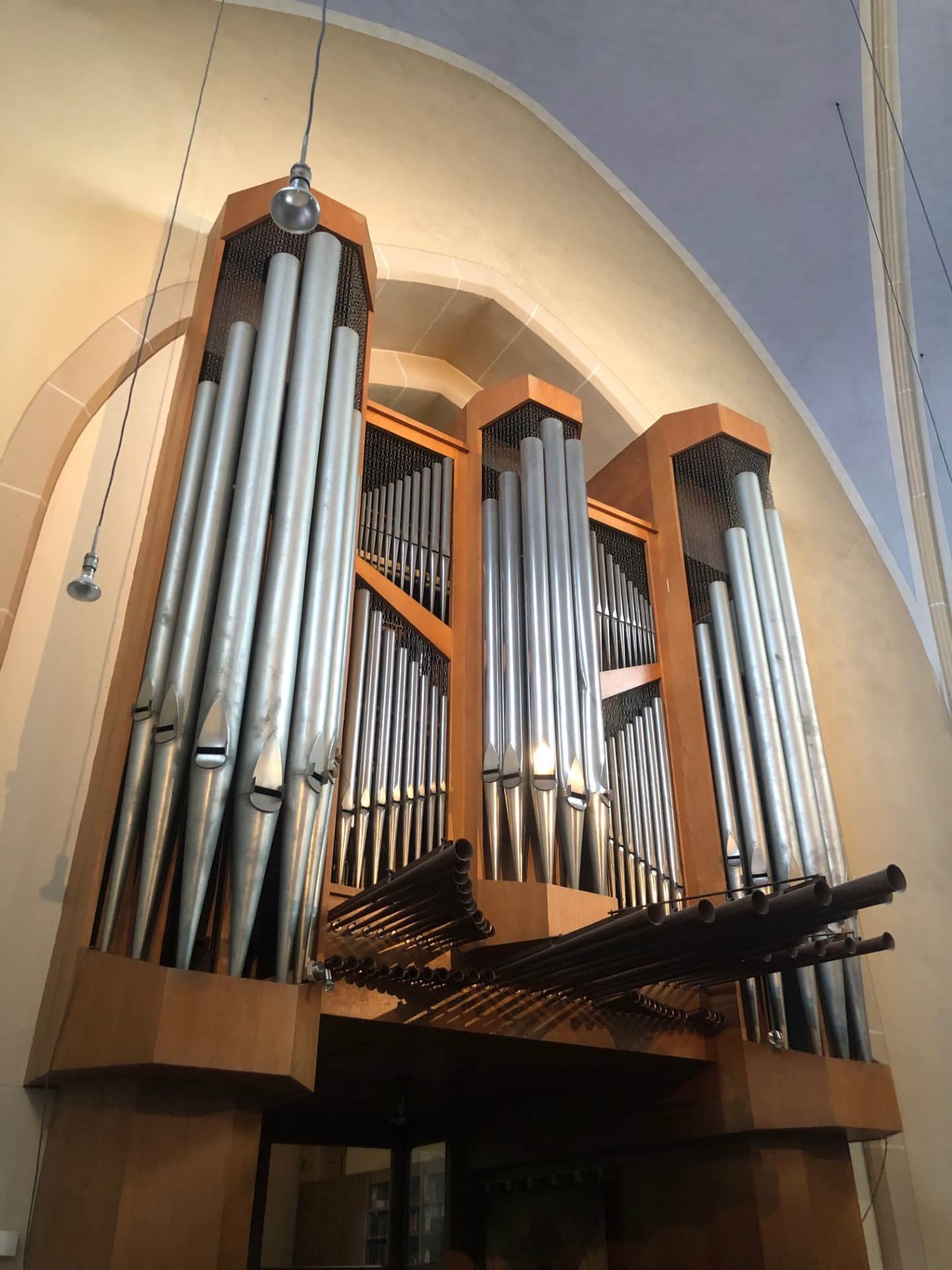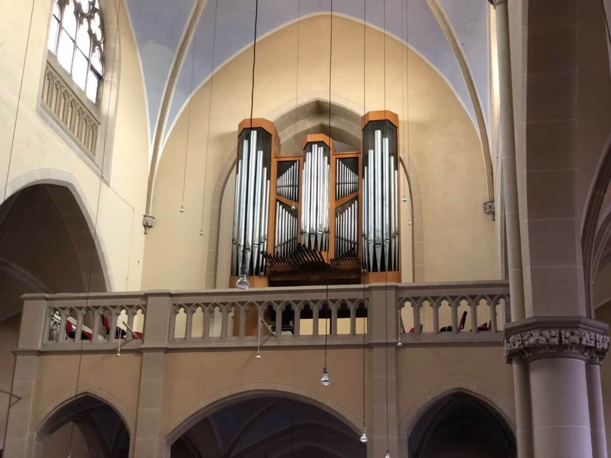 Schwellwerk (C-g3): 56 toetsen Holzgedeckt 8′, Gambe 8′, Vox Coelestis 8′ – 2014, Prästant 4′, Rohrflöte 4′, Schwiegel 2′, Sifflote 1 1/3′, Sesquialter 3 fach, Scharffzimbel 3 fach, Oboe 8′ – 2014, Tremulant.