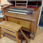 Trayser bouwde in een onbekend jaar een nieuw drukwindharmonium met 2 manualen en een vrij pedaal. Simon den Hartigh restaureerde het instrument in 2023.