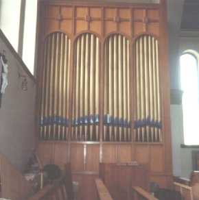 Great: Open Diapason 8′, Clarabella 8′, Dulciana 8′, Octave 4′, Fifteenth 2′ – nieuw 1977.