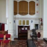 SWELL (C – g3) 56 TOETSEN (ENCLOSED): Double Diapason 16′, Open Diapason 8′, Lieblich Gedeckt 8′, Salicional 8′, Voix Celestes 8′ TC, Principal 4′, Piccolo 2′, Mixture III, Cornopean 8′, Oboe 8′, Clarion 4′, Tremulant.