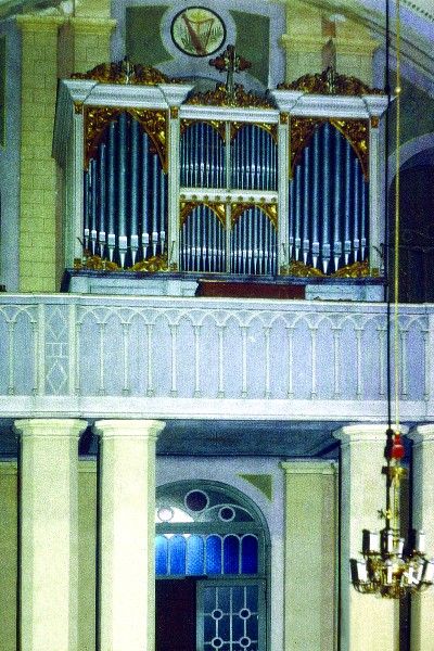 Positiv: C – c3 Gedeckt 8′, Traversflöte 8′, Principal 4′, Fugara 4′.