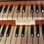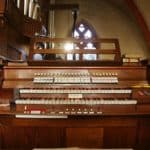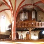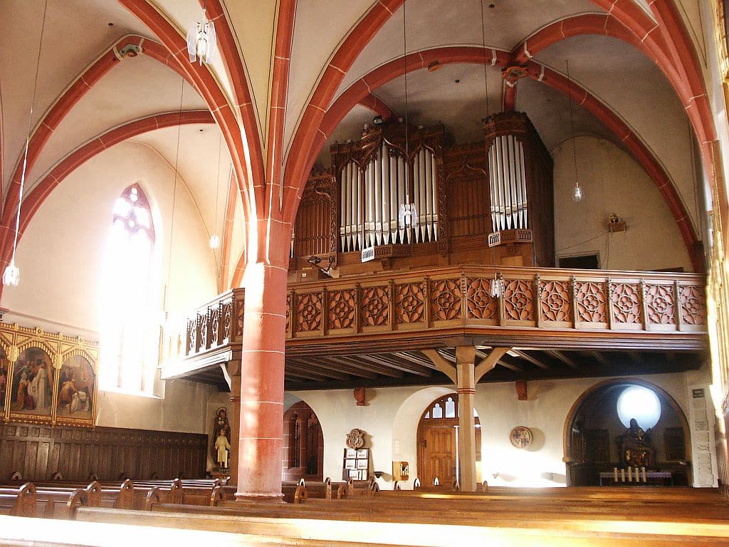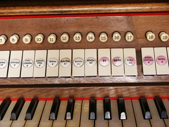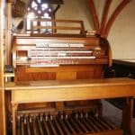 | I. Hauptwerk: Bordun 16 Principal 8 Viola di Gamba 8 Concertflöte 8 Octave 4 Rohrflöte 4 Quinte 2 2/3 Mixtur 4 fach (4′) – 1956 |