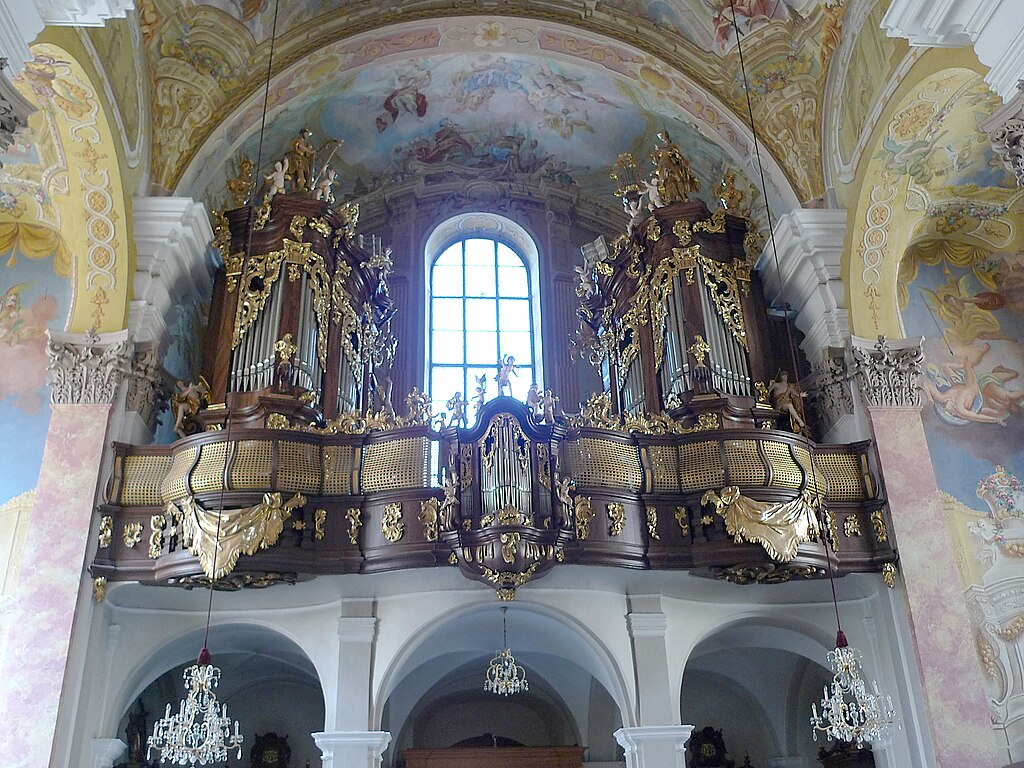 HAUPTWERK (C – g3) 56 TOETSEN: Bourdon 16′, Principal 8′, Spitzflöte 8′, Gamba 8′, Bifara 8′ (from a°), Octav 4′, Blockflöte 4′, Quinte 2 2/3′, Octav 2′, Cornett 5 fach (8′) (from g°), Mixtur 5 fach (1 1/3′), Scharff 4 fach (1′), Trompete 8′.