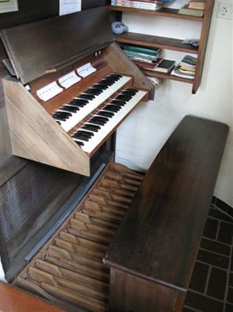 Manuaal II: Gamba 8 Holpijp 8 Roerfluit 4 Quint 1 1/3 Sesquialter 2 sterk Tremulant |