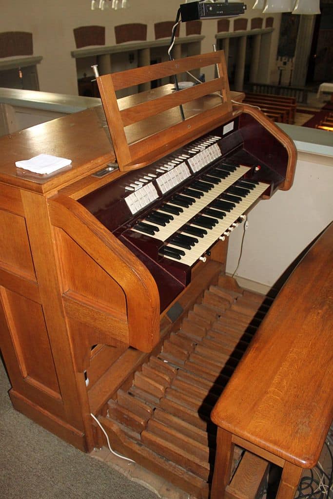 Couplers: Manuaal I – Manuaal II, Manuaal I – Manuaal II 16′, Manuaal II – Manuaal II 16′, Pedaal – Manuaal I, Pedaal – Manuaal II.