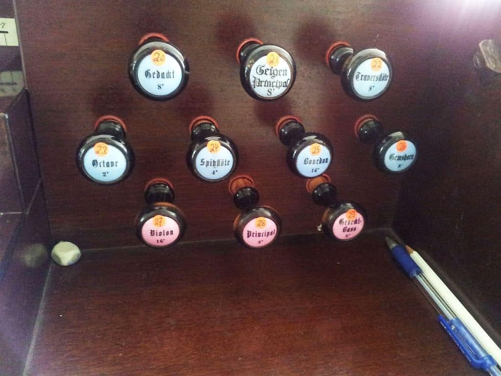 Pedal: C – d1 Subbass 16′, Violon 16′, Principalbass 8′, Gedacktbass 8′.