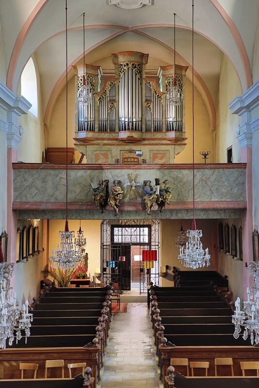 POSITIV: Gemshorn 8′, Quintatön 8′, Copula 8′, Prinzipal 4′, Flöte 4′, Scharf 3 fach.