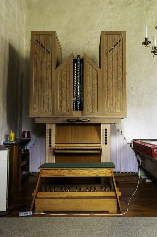 MANUAL (C-f3): 54 TOETSEN Gedakt 8′, Principal 4′, Spetsflöjt 4′, Oktava 2′, Kvinta 1 1/3′, Scharf 3 chor.
