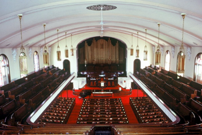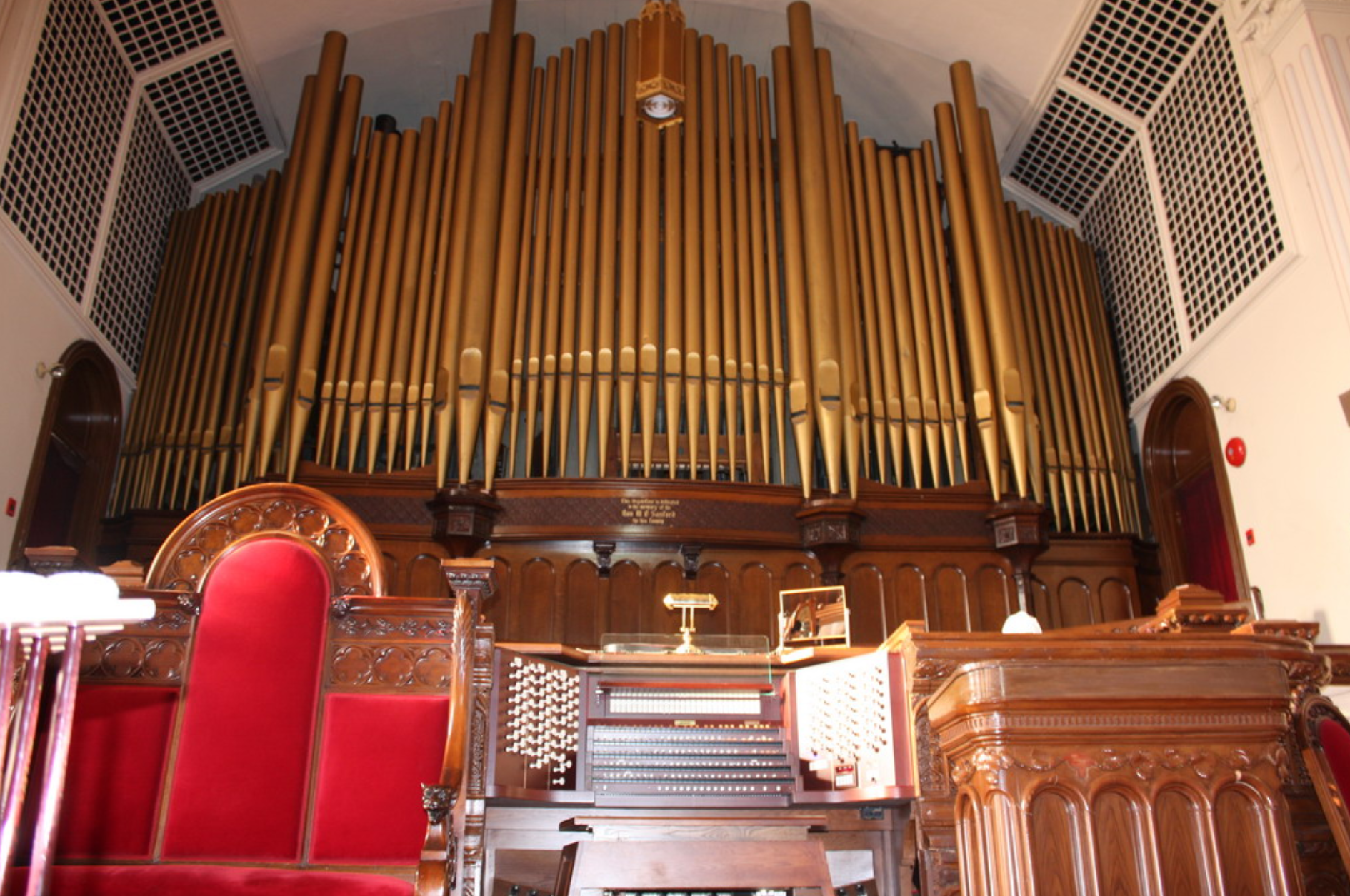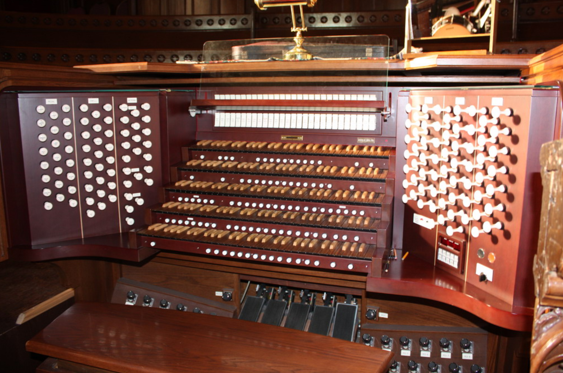 Echo Manual (enclosed): Principal 16′, Principal 8′, Bourdon 8′, Harmonic Flute 8′, Dulciana 8′, Unda Maris 8′ (2 ranks), Principal 4′, Travers Flute 4′, Piccolo 2′, Vox Humana 8′, Musette 8′, Horn 8′.