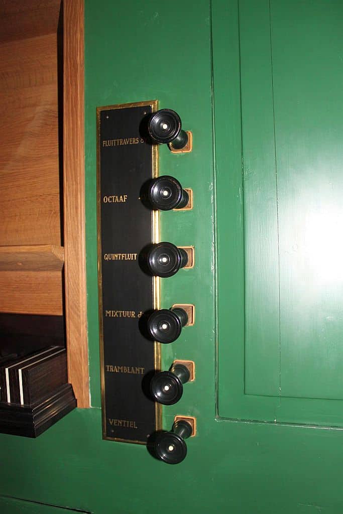 Manuaal: C – f3 Praestant 8′ – front 1978, Holpijp 8′, Fluit Travers 8′ (discant), Octaaf 4′, Fluit 4′, Quintfluit 3′ – 1986, Octaaf 2′, Mixtuur III-IV sterk (B/D) – deels 1986, Kromhoorn 8′ (B/D) – 1986.